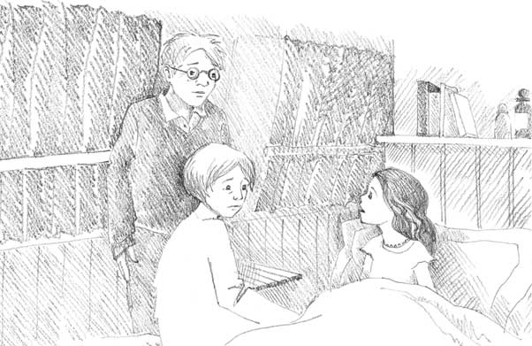 Лодка слегка качнулась, в каюту вошли бабушка с дедушкой. Девочка села в кровати и с надеждой на них взглянула.