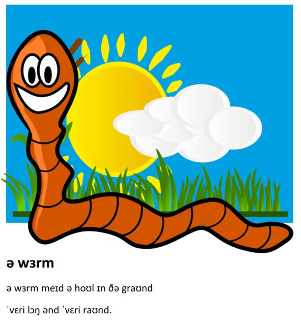 A worm (червяк) made (сделал) a hole (нору) in (в) the ground (земле)