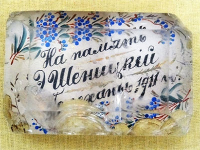 01.21. Сувенир для Э. Шенитской. Работа Телеханской стекольной фабрики, 1911.[189]