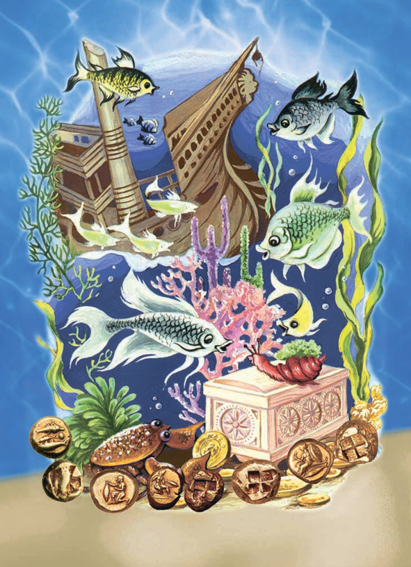 Оказалось, что в резной шкатулке обитали Монеты из древней Греции и Древнего Рима, городов Кавказа и Турции. Были они и золотыми, и медными, и серебряными. И каких только Черноморских обитателей человек на них не изобразил! Всех не перечислить. Одним словом, не просто подводные обитатели, а подводное сокровище!