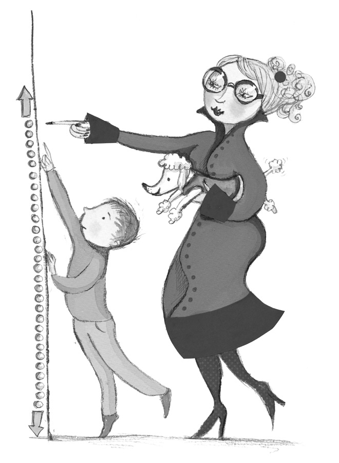 На стене перед лифтом были кнопки: для каждого этажа своя. И разумеется, кнопка для верхнего, 29-го этажа, была на самом верху. Пол подпрыгнул разок, потом ещё разок, но – нет, не дотянуться. Он уже хотел отказаться от этой затеи и идти дальше пешком, как вдруг над его головой протянулась чья-то рука, и эта рука нажала на кнопку 29. Рука принадлежала даме в красном пальто и красных очках. В другой руке дама держала белого пуделя в красной попонке. Дама смотрела на Пола внимательно-превнимательно сквозь свои красные очки.
