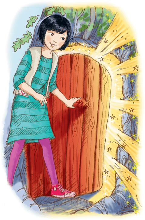 Неожиданно в стволе дерева появилась маленькая дверца – не выше плеч девочек – с ручкой в форме листа.