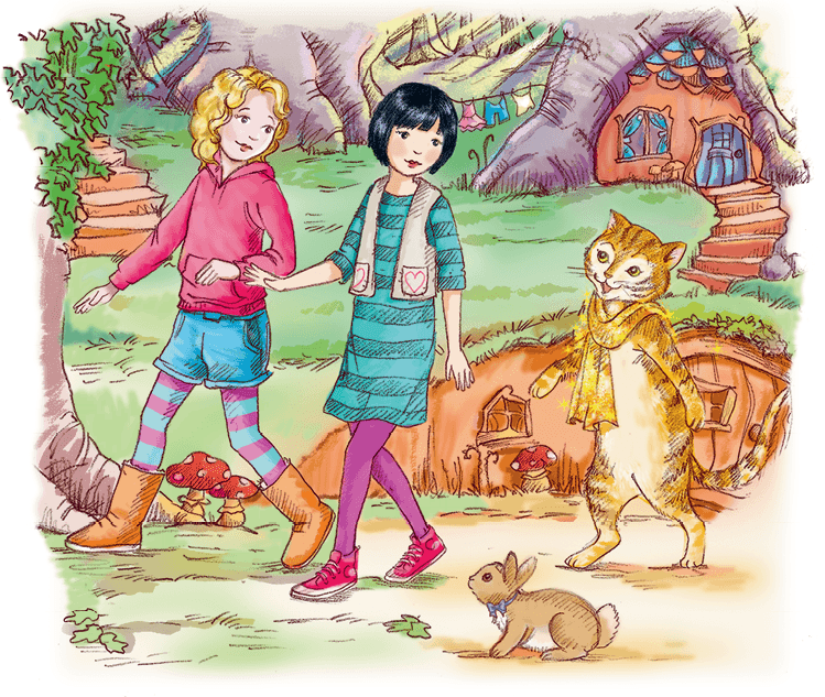 Девочки обернулись, пытаясь понять, кто с ними говорил. К своему изумлению, они снова увидели кошку с золотистой шерстью. Она стояла на задних лапах – ростом доходя девочкам до плеч – и улыбалась. На шею у неё был намотан сверкающий шарф.