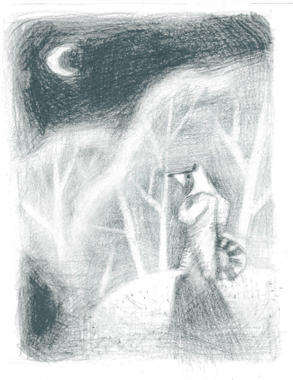 Енот быстро рос. И вот уже он стал совсем большим. Он уходил из дома надолго и возвращался только поздно вечером.