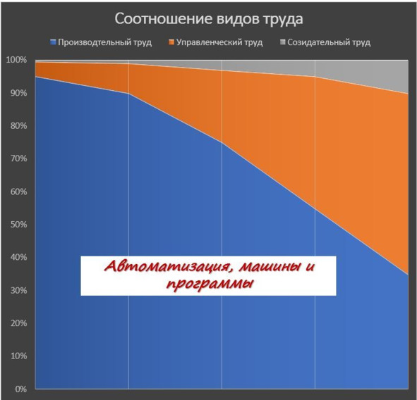Все меньше и меньше востребованы должности производительного труда (включая умственного производительного труда). А все больше управленческого (в частности, проектного и процессного управления) и созидательного труда.