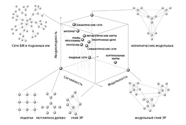Илл. 8. Разновидности сетей (БМ: безмасштабные; ЭР: Эрдёша – Реньи, то есть случайные).