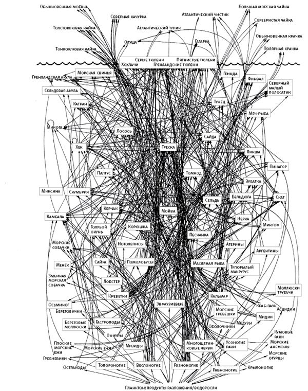 Илл. 2. Частичная пищевая сеть Шотландского шельфа в северо-западной части Атлантического океана.