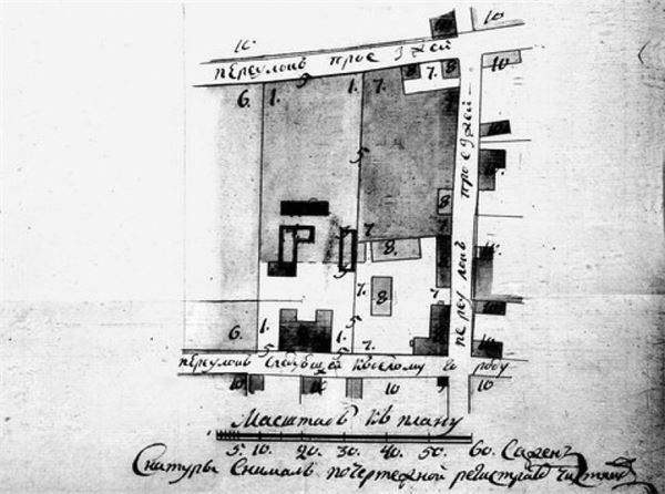 План двора действительного тайного советника князя Н.Б. Юсупова, 1802 г. (Центральный исторический архив Москвы)