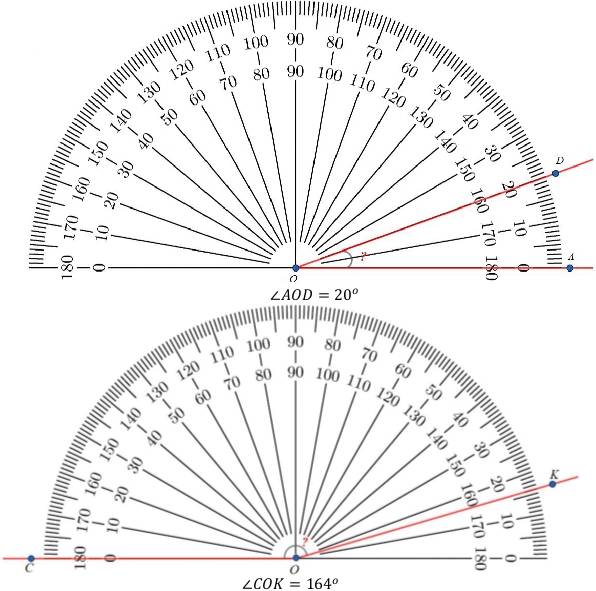 Углы обозначаются тремя большими латинскими буквами, где средняя буква является вершиной угла, началом лучей.