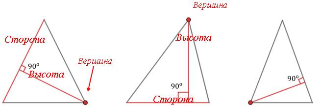 5.Высота – это отрезок, концы которого соединяют вершину треугольника и противоположную сторону так, что сторона и отрезок образуют (прямой угол).
