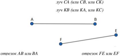 Также надо различать и понимать, что такое точка, отрезок, луч, прямая, угол.