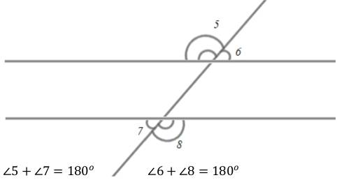 Внутренние односторонние углы в сумме составляют 180 градусов