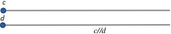 Если у прямых нет общей точки пересечения, то такие прямые называются параллельными. Прямая c параллельна прямой d. (обозначение //)