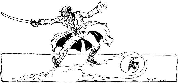 Тоді Чарівник кинувся вперед зі своєю шаблюкою, розмахнувся, крутнув її разів зо два над головою і завдав потужного удару, яким розсік Чаклуна навпіл.