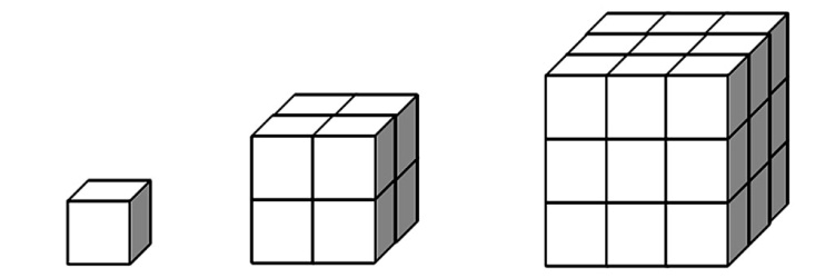 Кубические числа возникают при складывании кубиков: 1, 2·2·2=8, 3·3·3=27, 4·4·4=64, 5·5·5=125… , то есть это просто кубы натуральных чисел.