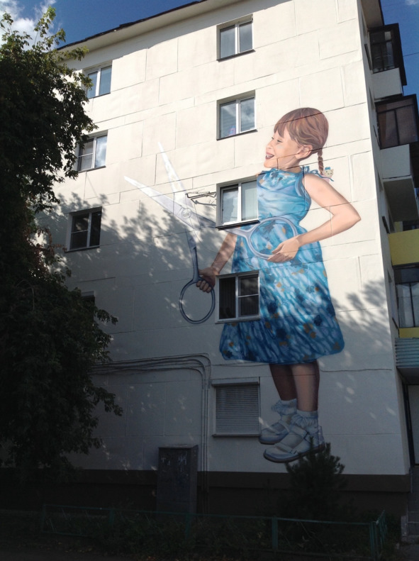 Началось всё с частной инициативы художников, украсивших муралами несколько пятиэтажных домов. Получилось довольно симпатично. И главное – неожиданно. Такого у нас раньше не делали.
