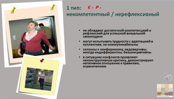 Таким образом, тип визуальной самопрезентации связан с рядом индивидуально-психологических и профессиональных особенностей человека. Внешний облик работника оценивается как невербальный индикатор уровня визуальной компетентности и осознанности.