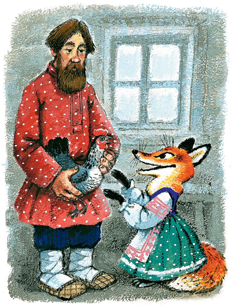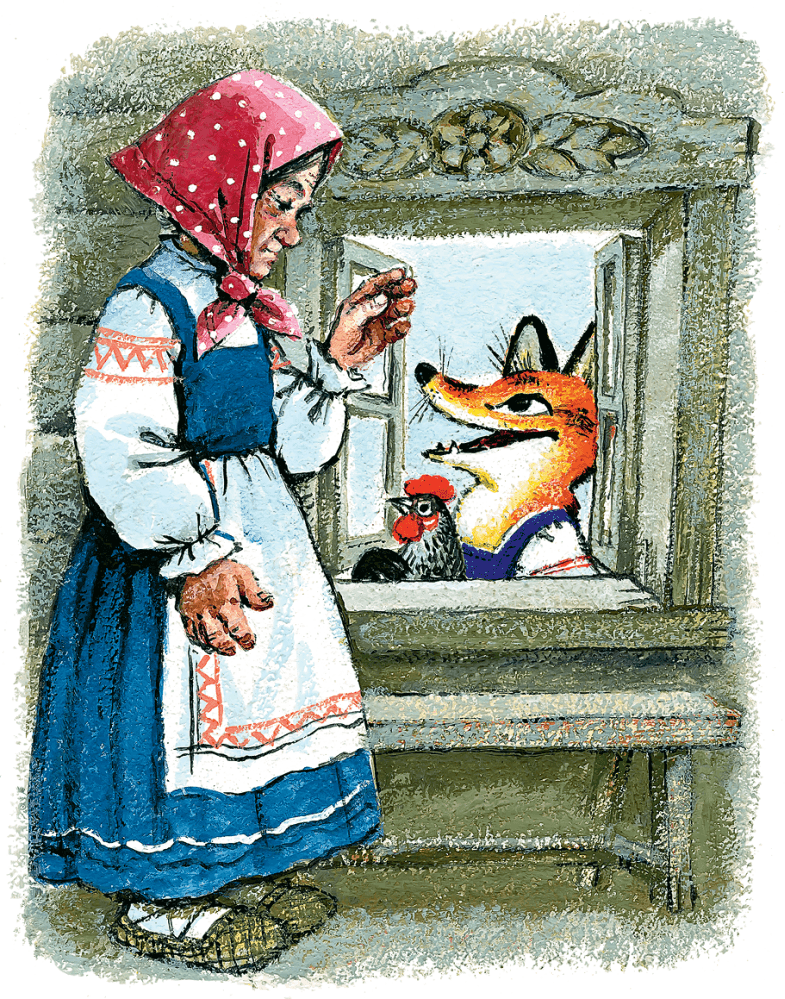 – А куда же моя скалочка подевалась? Отдавайте мне теперь за неё курочку!