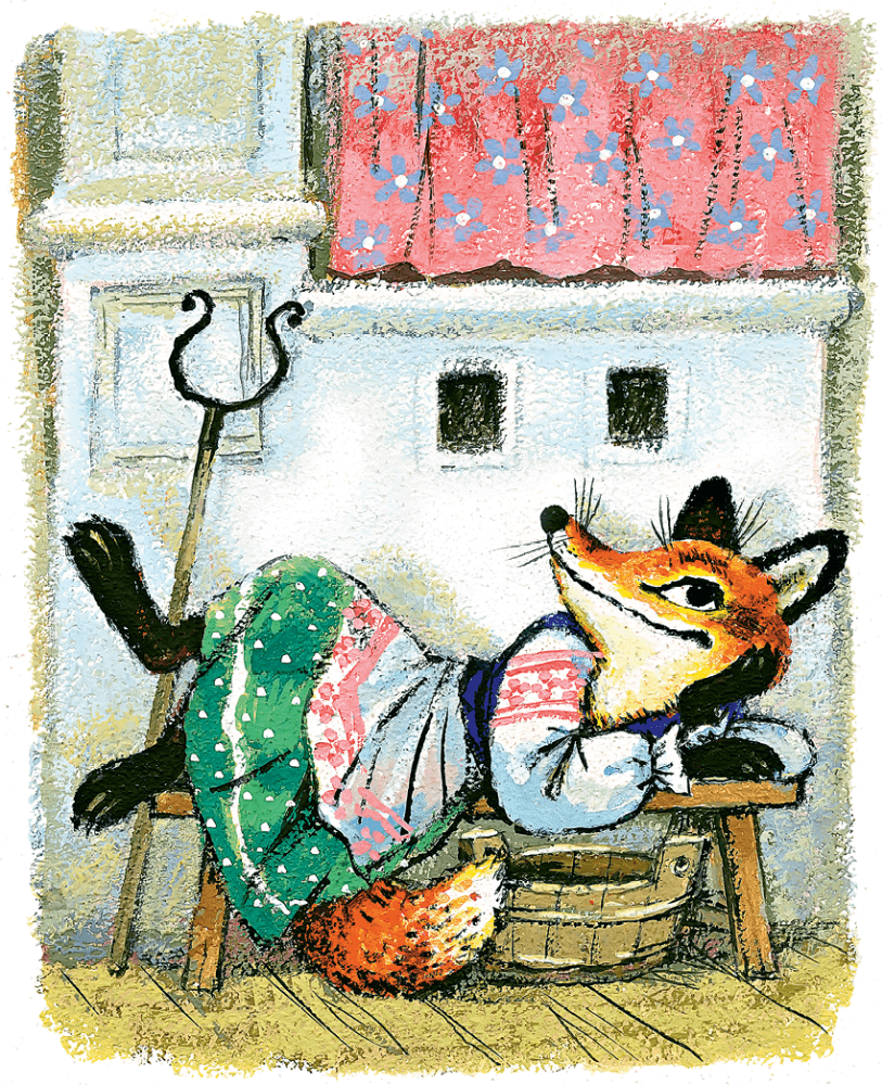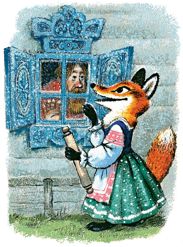 Подобрала как-то лисичка на дороге скалочку. Пришла с ней в деревню и стучит в крайнюю избу: