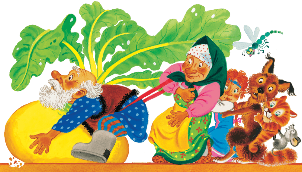 Мышка за Машку, Машка за Жучку, Жучка за внучку, внучка за бабку, бабка за дедку, дедка за репку.
