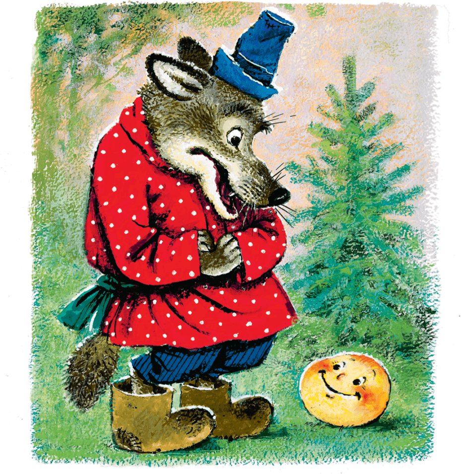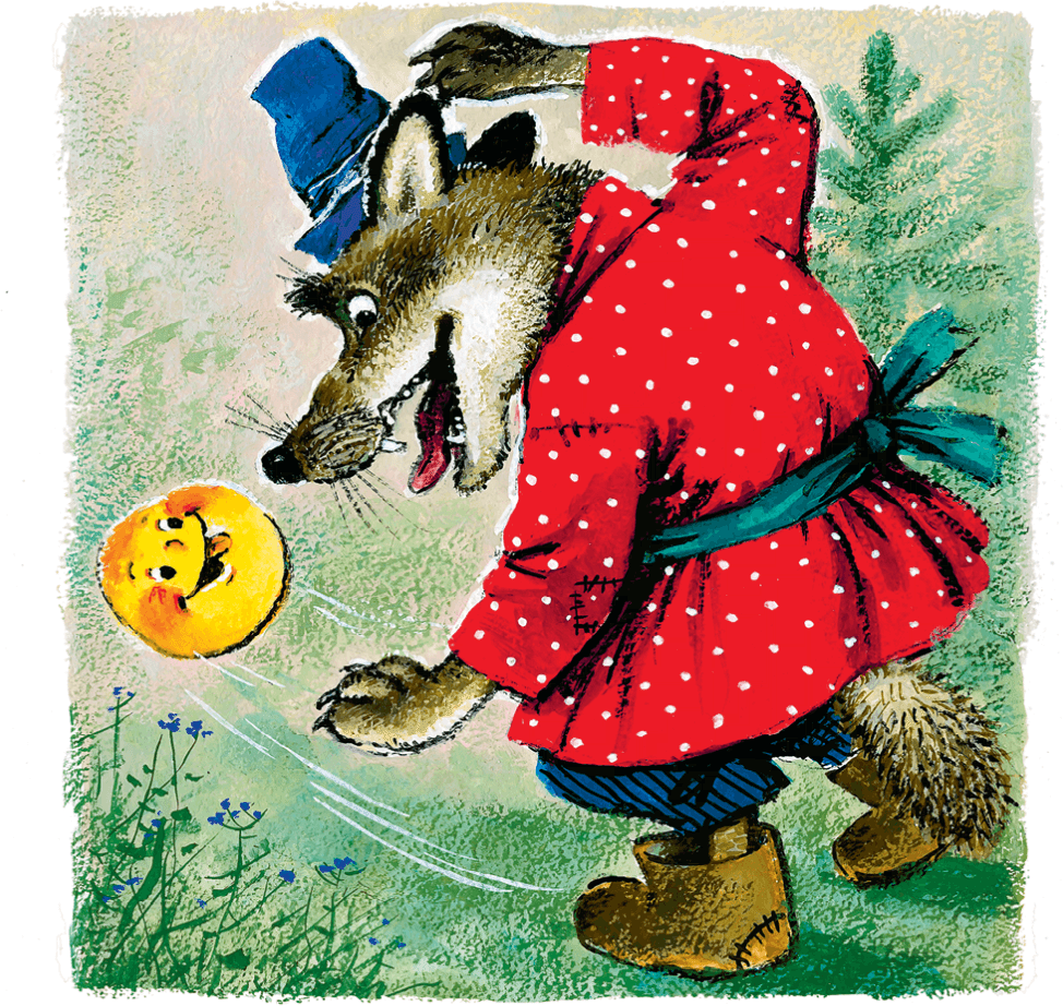 Катится колобок по тропинке в лесу, а навстречу ему серый волк: