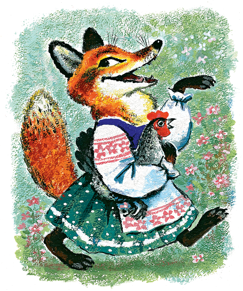 А утром, ни свет ни заря, поднялась лисичка, съела поскорей курочку да и крик подняла: