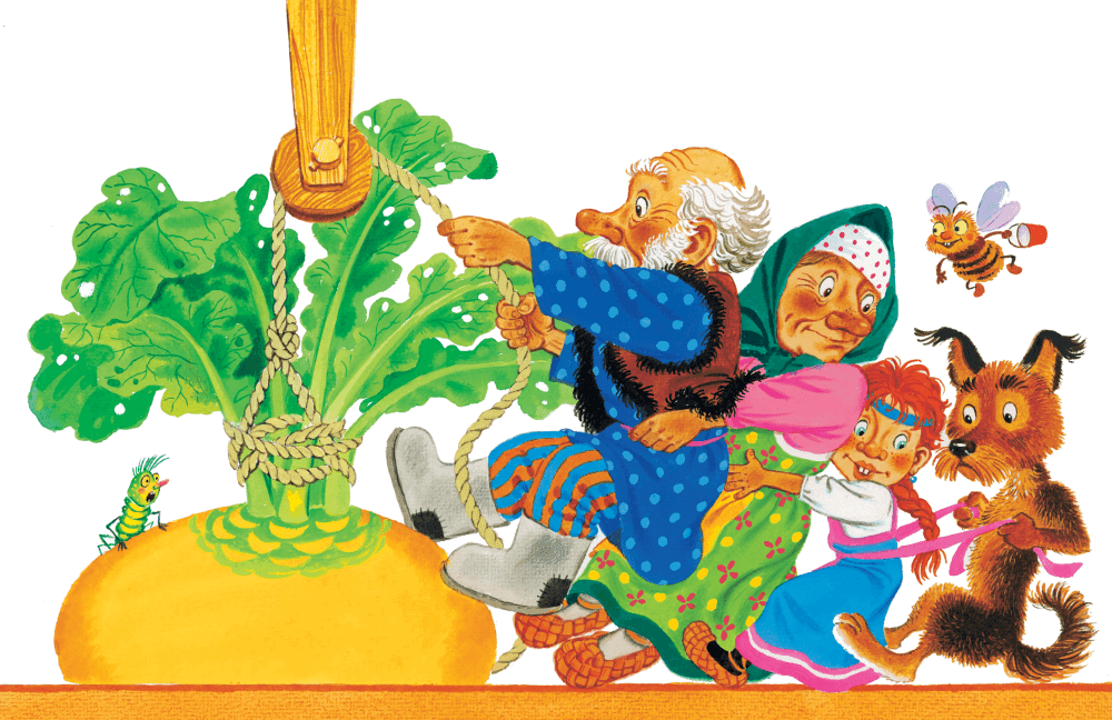 Жучка за внучку, внучка за бабку, бабка за дедку, дедка за репку.