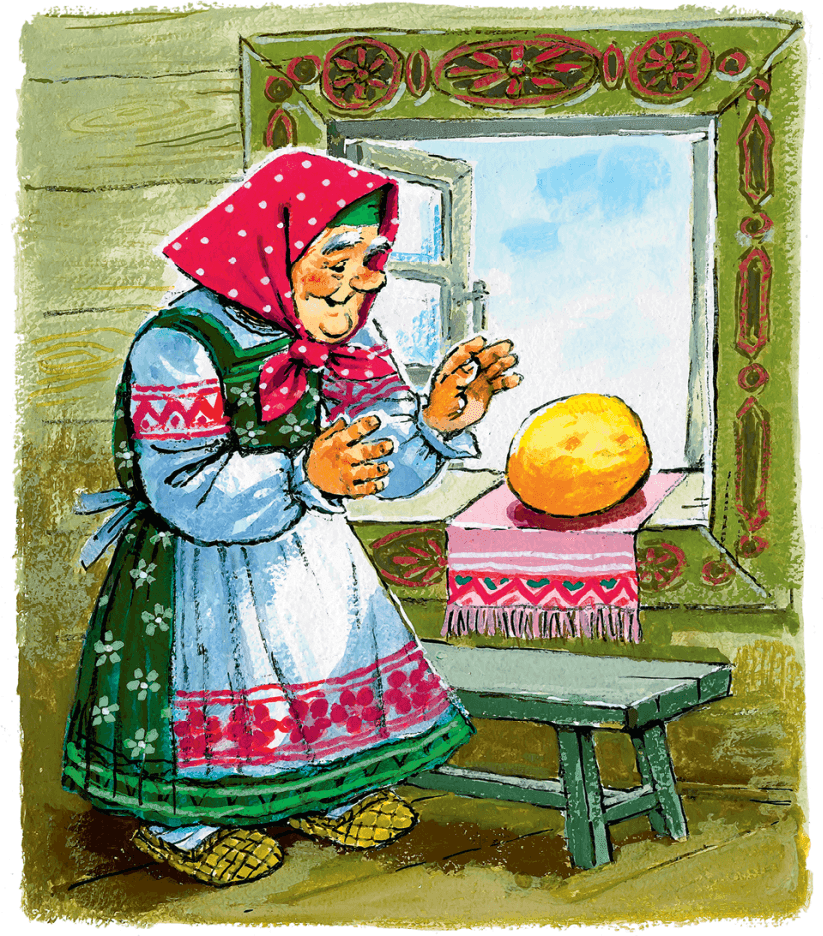Старушка так и сделала: намела, наскребла горсти две муки, замесила тесто на сметане, скатала колобок, изжарила его в масле и положила на окно простынуть.
