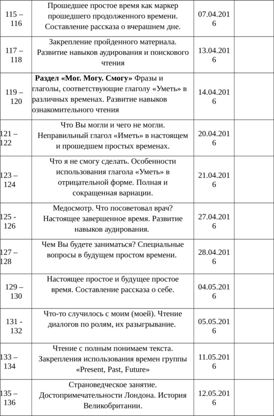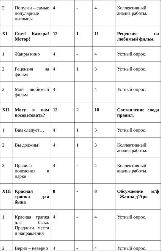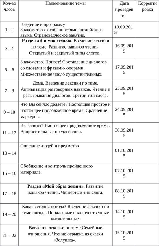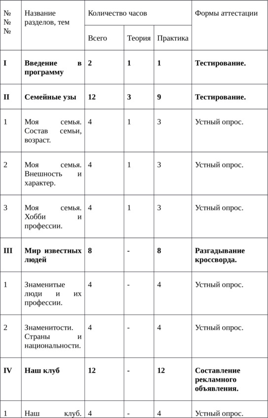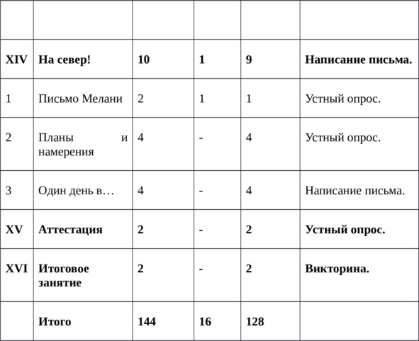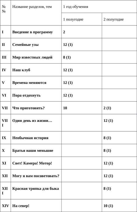 (1 год обучения, 4 часа в неделю, 144 часа в год)
