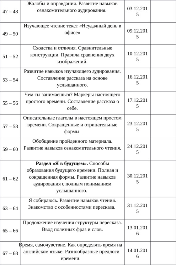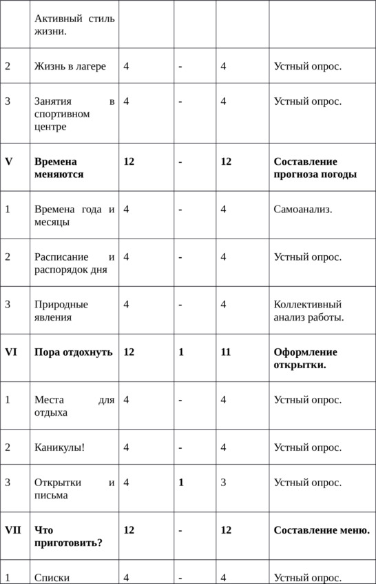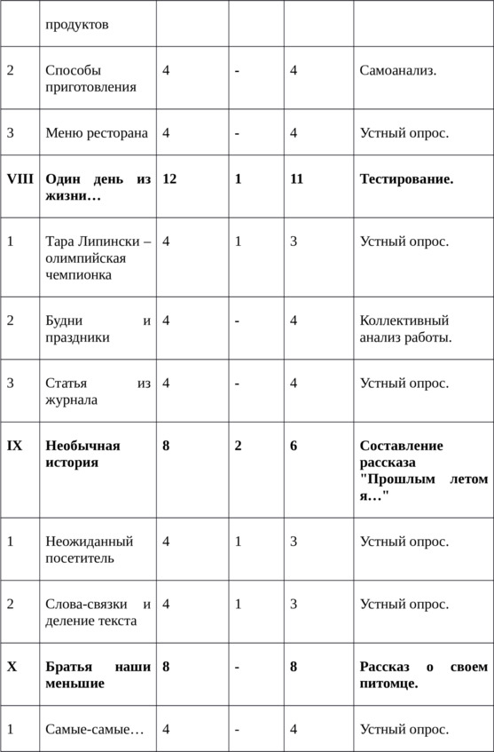 Практика: Рассмотрение способов приготовления пищи. Пополнение лексического запаса и отработка вновь изученных единиц. Правила написания рецептов с помощью использования начальной формы глагола в повелительном наклонении. Закрепление правила использования окончания для образования мн. ч. Отработка навыков произношения звука «s» в конце слова. Чтение рецептов и заполнение в них пропусков. Составление специальных вопросов в настоящем простом времени. Использование неопределенных местоимений в составлении собственного рецепта.