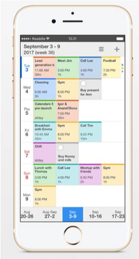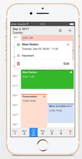 Calendars 5 от Readdle – моё самое любимое приложение на iPhone, отличающееся от стандартного календаря телефона только одной, но очень важной вещью. Он подтягивает из стандартной программы «Напоминания» ту задачу, у которой срок стоит на тот день, который Вы просматриваете. Таким образом, каждый раз при просмотре списка задач на день, в самом верху будет маячить это напоминание, мозоля глаза до тех пор, пока её торжественно не вычеркнуть, поставив галочку. Здесь же можно создавать новые напоминания, не переходя в стандартное приложение iPhone.