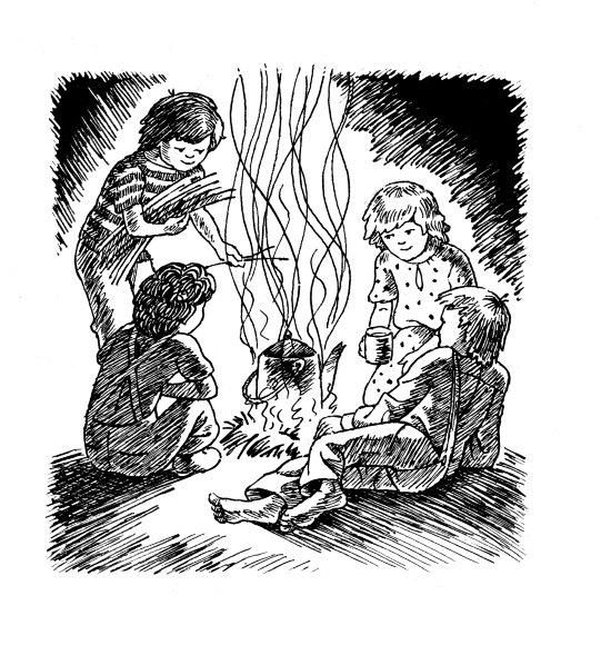 Дети говорили о своём будущем доме, пока не устали. Тогда они вернулись на песчаный берег, и Джек сказал, что пора бы выпить по чашке какао, съесть по куску пирога – да на боковую.