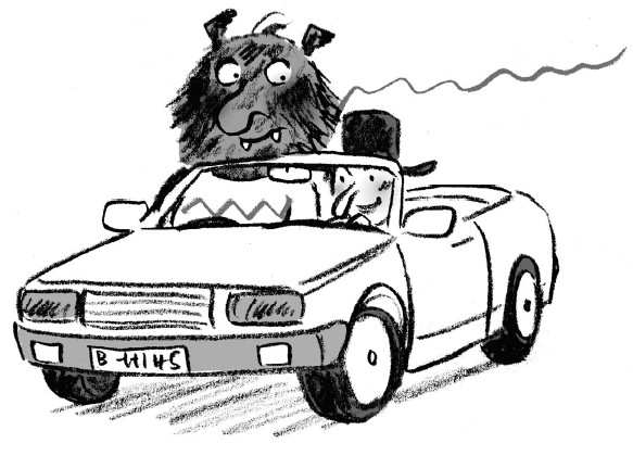 И Эмми начала рассказ о Гериберте Горчице и его книге, но её вдруг перебил громкий гудок. Эмми испуганно обернулась. Рядом с ними затормозил красный кабриолет. За рулём сидел лысый мужчина.