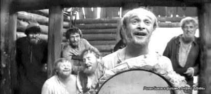 Рис. 6a. Песни русского скомороха в сарае или хлеву. Актер Ролан Быков в фильме А. Тарковского «Андрей Рублев». Взято из Интернета.