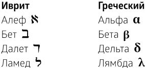 Древние греки следовали иудеям не только в обозначениях цифр: их алфавиты также очень похожи. Ниже можно увидеть названия некоторых букв в сравнении.
