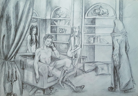 Дьявол с удовольствием раскинулся в своем кресле из шерсти викуньи и золота. Он любил роскошь. Весь его замок глубоко под землей, намного глубже, чем обосновались гномы, был олицетворением жестокости и изящества. Богатство проскальзывало даже в незначительных вещах, таких как столовые приборы или любимый портрет самого себя.