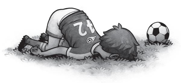 Чарли и Пейдж увидели, как один из «Комет», явно обессиленный, упал на колени. И пробыл в этой позе некоторое время, ткнув голову в газон. Невысокий парнишка с лохматыми русыми волосами и веснушками был одним из двух футболистов, которые пытались поддерживать игру.