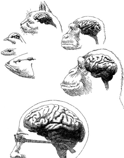 Пожалуй, одними только жизненными проблемами, с которыми сталкивались наши предки, не объяснить удивительной скорости увеличения размеров их мозга. Должна была быть еще какая-то причина. А мозг увеличивался невероятно быстро: у Homo habilis он составлял 600—750 кубических сантиметров, а у Homo erectus – уже 775—1225 кубических сантиметров (размеры мозга современного человека – в среднем 1000— 1400 кубических сантиметров). Развитие обрело столь стремительный характер задолго до появления организованного общества и языка и тем более до появления производства. Иными словами, в становлении этой наиболее сложной среди всех биологических структур произошел какой-то удивительный прорыв.