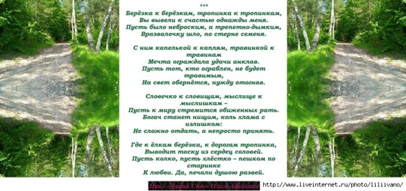 © Абайкина Ольга, 2017 С/п №117112405665Берёзка к берёзкам, тропинка к тропинкам