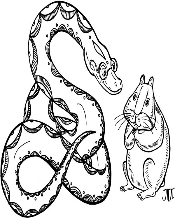 Змей открыл дверцу, и хомяк с опаской зашел в аквариум. Он, конечно, был напуган, ведь удав запросто мог бы его съесть. Но, во-первых, удав был сыт, а во-вторых, по понятным причинам он не мог поговорить с профессором и поэтому был рад весьма новому собеседнику (хотя виду и не подавал).