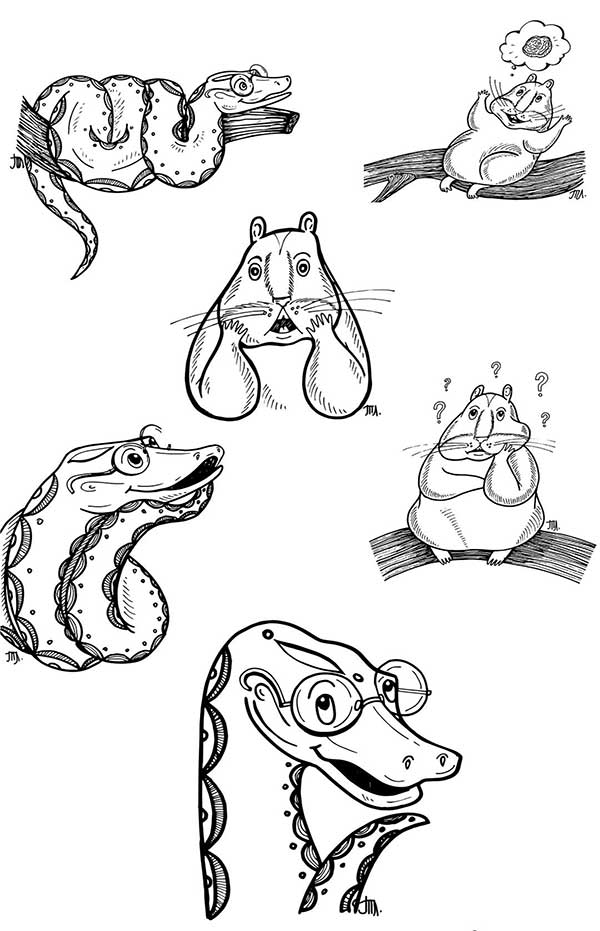 Хомяк совсем уже перестал бояться удава, он совершенно освоился в аквариуме. Удобно устроившись на ветке, зверек приготовился слушать.