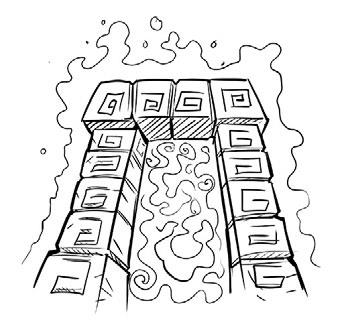 Взгляд Фрижеля приковал серебристый отблеск на стене. И он возник именно в том месте, которое расцарапывал эндермен. Фрижель подошёл поближе. Можно было подумать, что на камнях была какая-то гравюра. Он отодрал немного мха и налипших листьев. Это был, вне всякого сомнения, рисунок. Рисунок, который, судя по всему, появился здесь в незапамятные времена.
