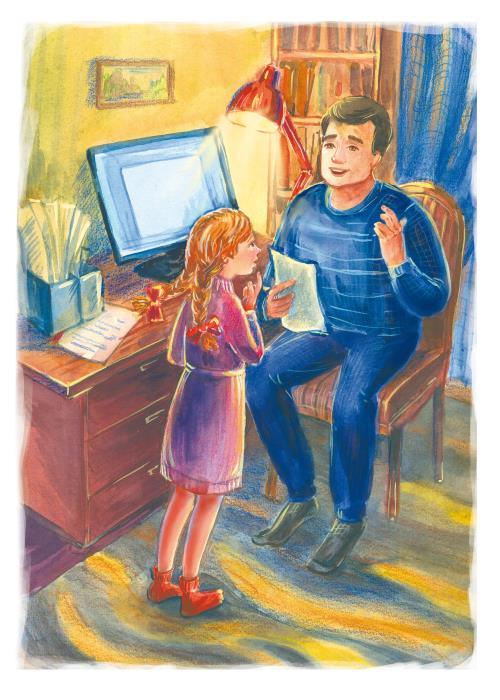 Папа оторвался от компьютера, взял у Светы листок-черновик с сочинением и стал читать. Минуты две-три он изучал, а потом сказал: