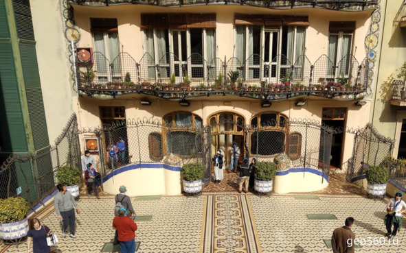 Не многие знают, но можно заглянуть во дворик Дома Бальо с обратной стороны и увидеть элементы, скрытые от обычных посетителей. Причем, сделать это можно совершенно бесплатно. Обойдите Дом Бальо справа и увидите вход в строительный супермаркет. Пройдите внутрь и поднимитесь на второй этаж. Пусть вас не смущает надпись «Only Staff» на дверях. Выйдя в них, вы окажетесь на балконе, как раз напротив Дома Бальо. Наслаждайтесь новыми видами дома, скрытой мозаикой Гауди, и пусть гуляющие посетители музея смотрят на вас с завистью, что не могут видеть того великолепия, которое доступно вам.