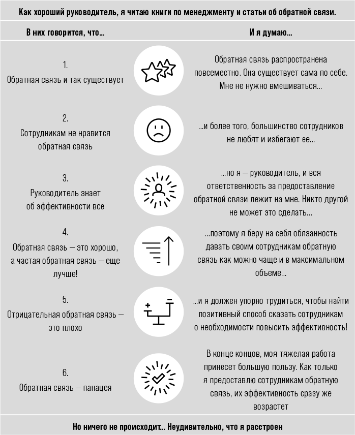 Вера в то, что обратная связь – это панацея, – миф. Вера в то, что обратная связь – это мощный инструмент руководства, который помогает повысить эффективность работы, – это реальность.