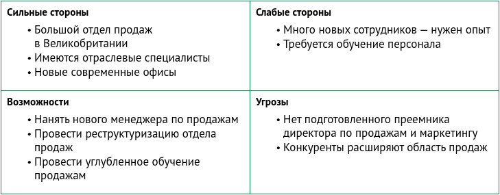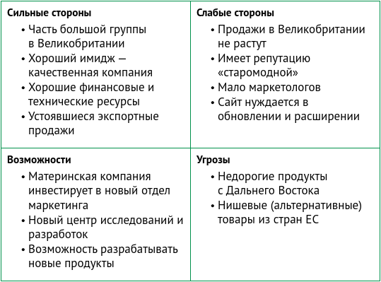 Рисунок 2.7. SWOT-анализ для географической зоны продаж (север Англии)