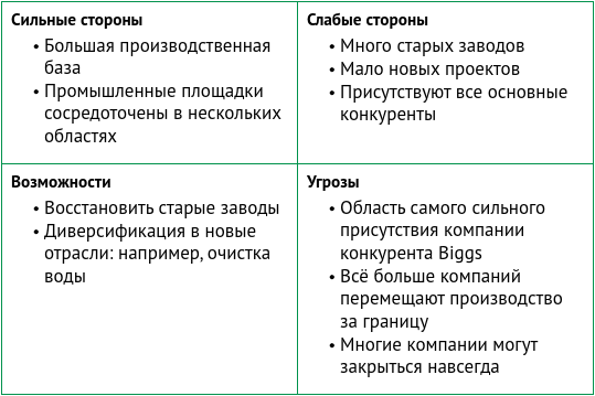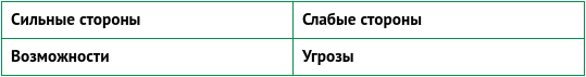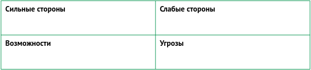 Теперь на примере собственного плана выполните SWOT-анализ в том же формате: