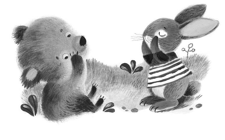 Вот сидят под большим кустом Медвежонок и Зайчонок и оба плачут. Листочками, как платочками, слёзы вытирают.