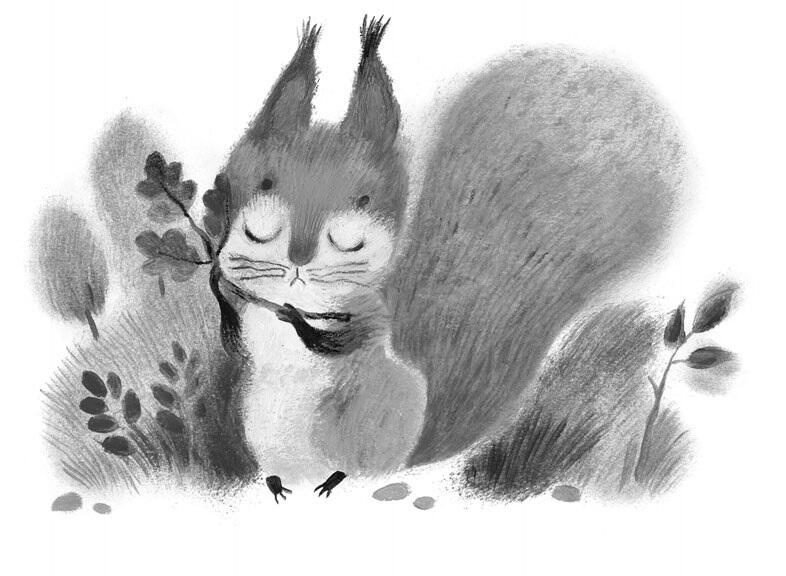 Прибежал Бельчонок. Увидел вырванный дубок и заплакал: