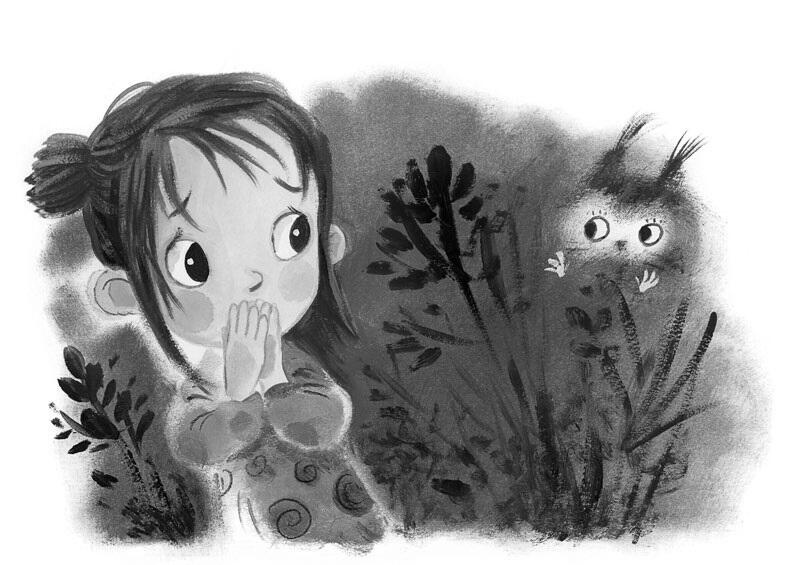 Вышла Ойка из дома и пошла по тропинке в лес. А в лесу тоже темно. Слышит Ойка, под кустом кто-то плачет.